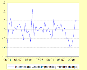 Especially encouraging is the month on month growth in intermediate goods imports, which would help determine future exports (log monthly changes):